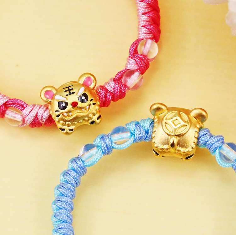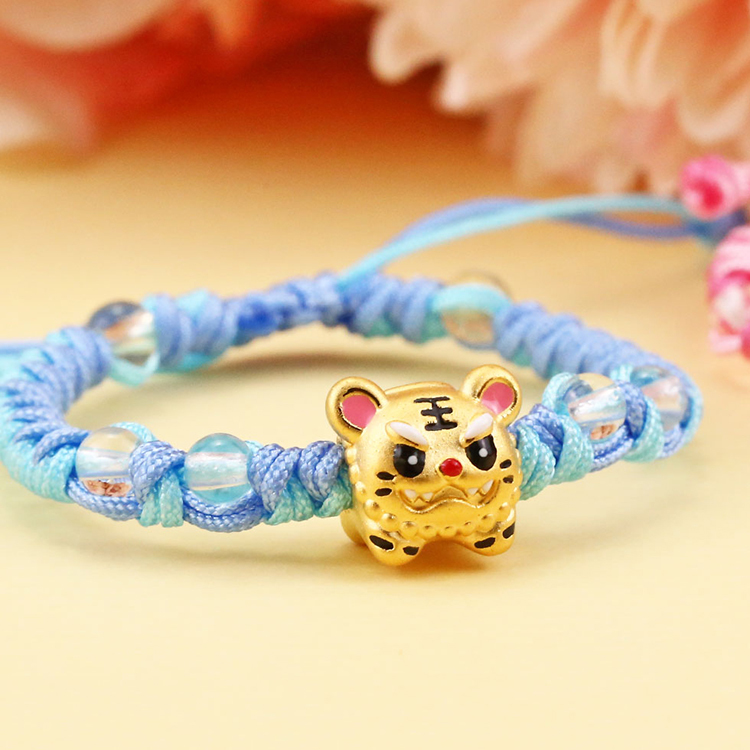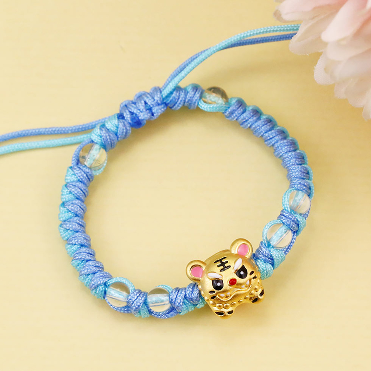 虎爺黃金彌月手鍊-粉藍色編織款    首頁 > 24h快速到貨 > 彌月禮物-24H
