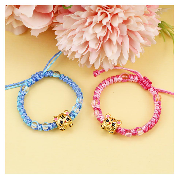 虎爺黃金彌月手鍊-粉紅色編織款 虎爺黃金彌月手鍊 粉紅編織款