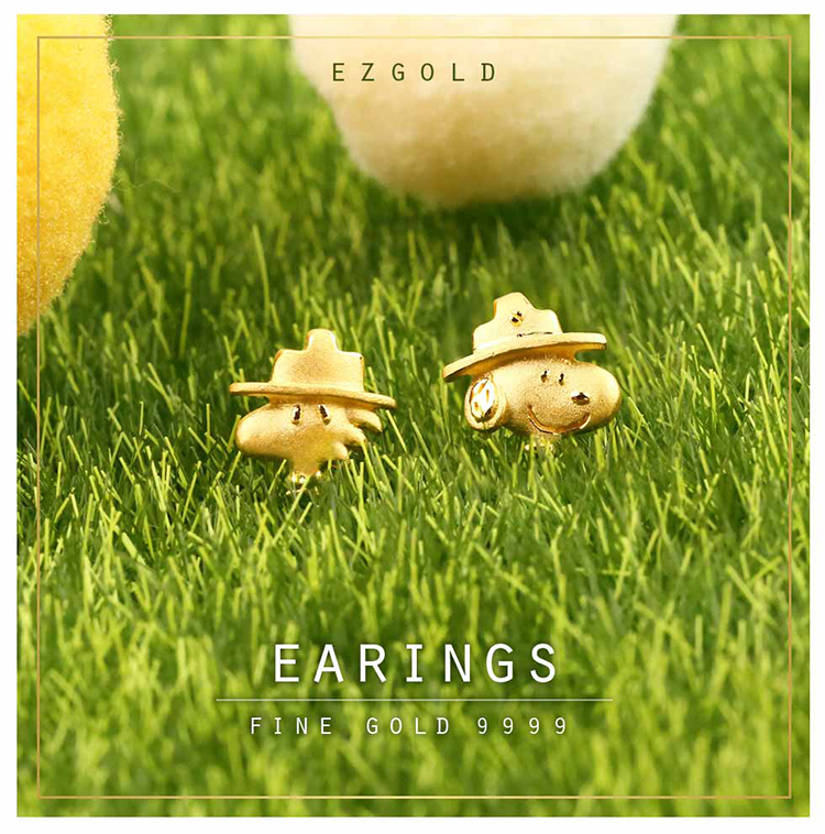 史努比耳環-史努比黃金飾品-史努比SNOOPY親密關係-黃金耳環 品牌--SNOOPY史努比