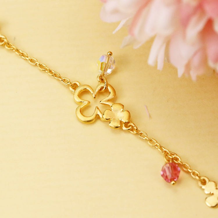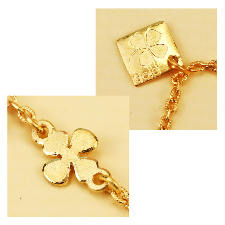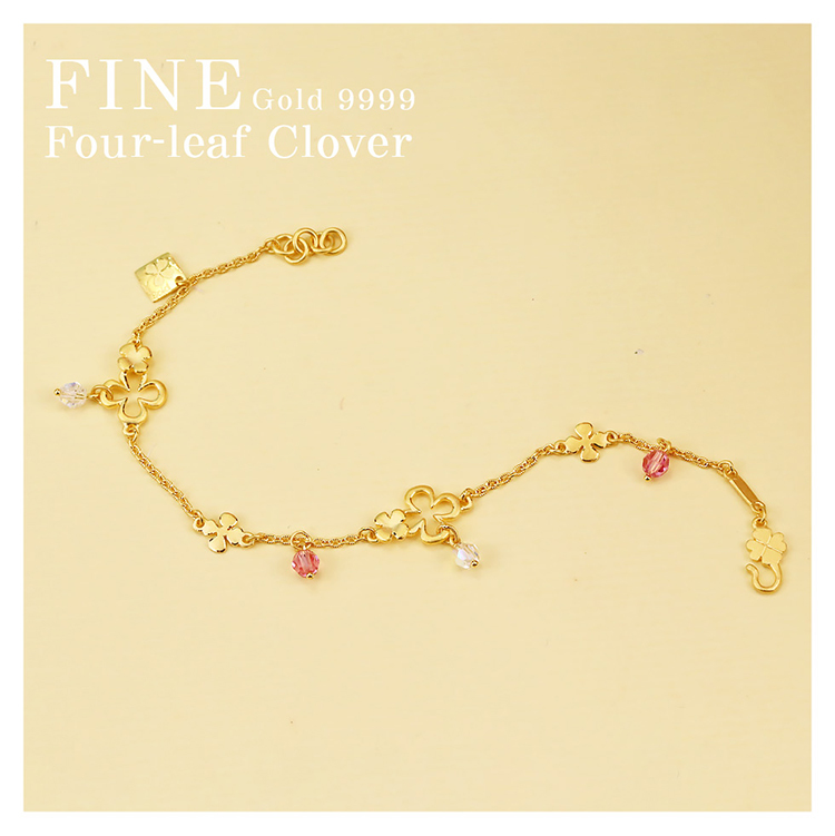 品牌► 幸運草金飾 材質► 黃金GOLD 搭配► 珠寶用晶鑽 重量► 黃金重約 5.66 克 ± 0.35 克 ( 1.51 錢±0.10 錢 ) -手鍊長度約 18 cm -附保證書、原廠包裝盒、原廠手提袋 ■以上商品規格由廠商提供參考,若有變更以出貨時為準,恕不另行通知。 ■基於個人衛生問題,本商品經配戴使用後概不退換,請見諒。