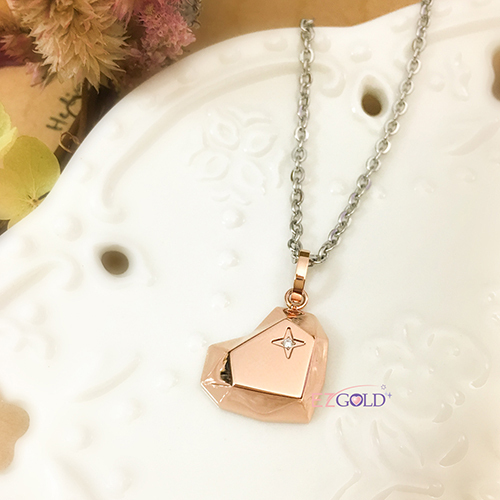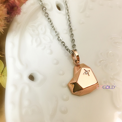 MIGO鋼飾 -愛的焦點-玫瑰金M- 鋼飾項鍊
